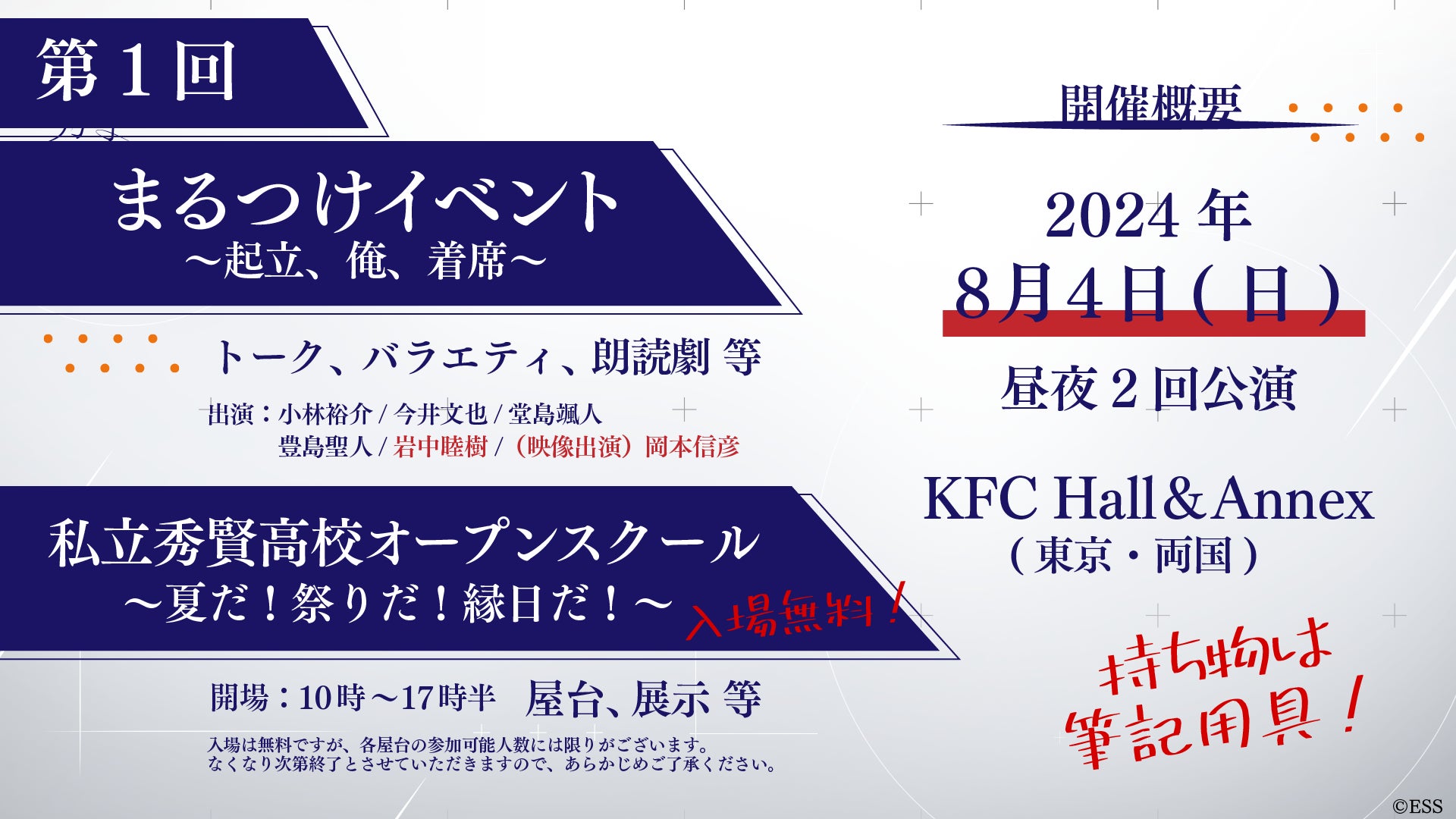 さらに、ドラマCDの最速先行チケット販売も行われており、特別企画「私立秀賢高校オープンスクール」も開催決定。