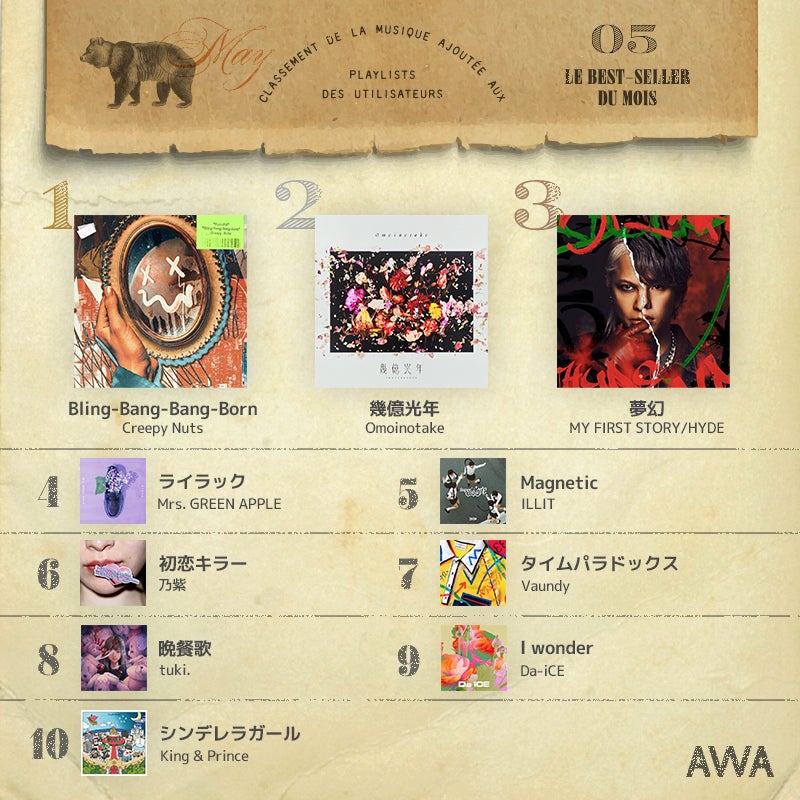 - AWAが2024年5月のプレイリスト採用楽曲ランキングを発表