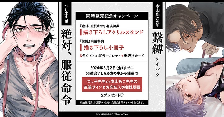 ホーリンラブブックスでは、つし子先生と本山あこ先生の最新コミックスが同時発売される記念キャンペーンを実施中です。
