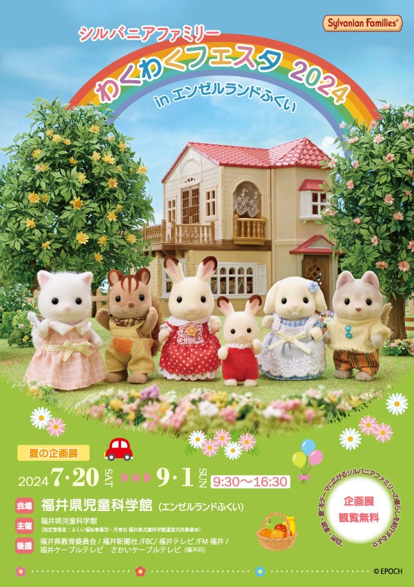 福井県児童科学館で開催される『シルバニアファミリー わくわくフェスタ2024 in エンゼルランドふくい』は、7月20日から9月1日まで開催されます。