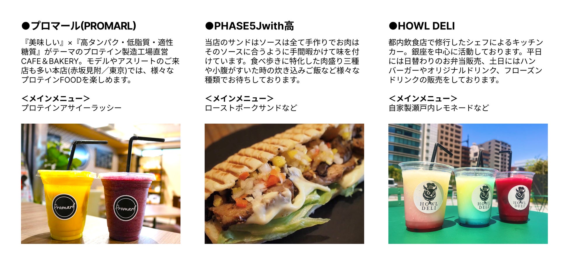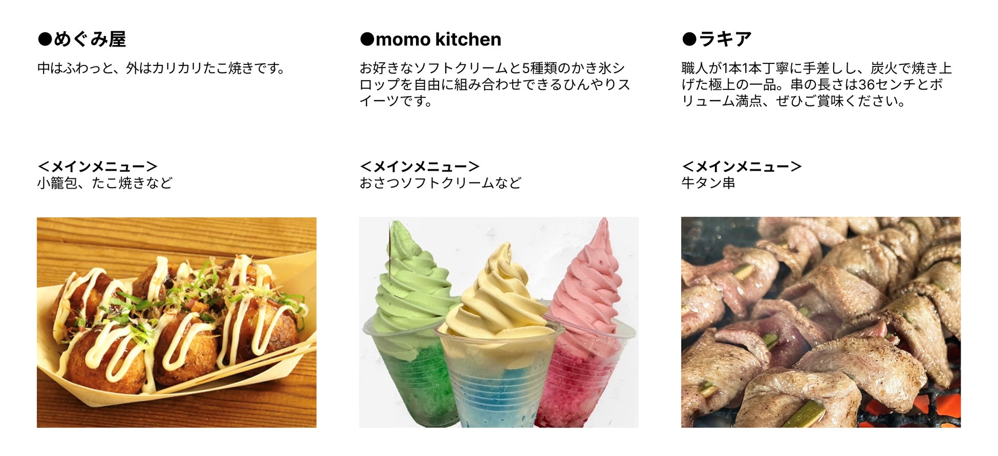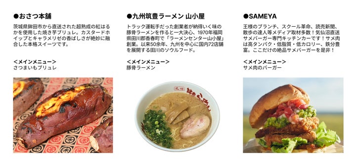 - YouTubeクリエイター監修の店舗以外に23店舗以上のキッチンカーとオフィシャルバー出店