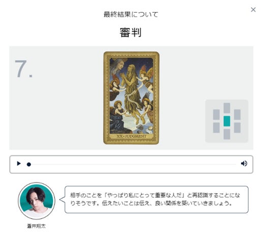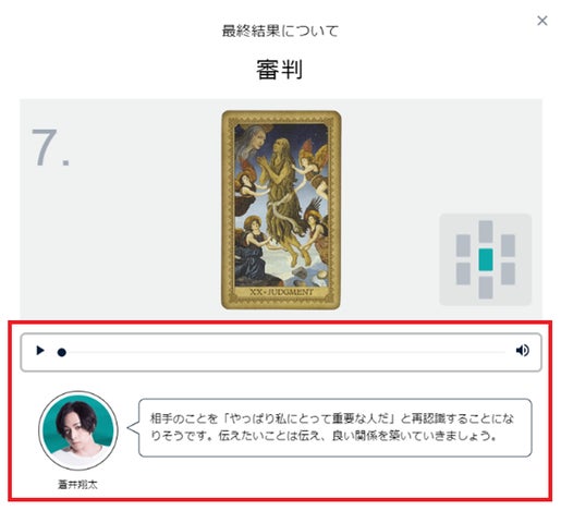 蒼井翔太と村瀬歩による様々な占いメニューがあり、個人の声で占い結果を楽しめます。