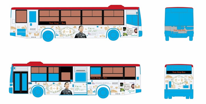• バスには伊藤沙莉さんの写真や寅子のイラストが施されており、新潟県やドラマをPR
