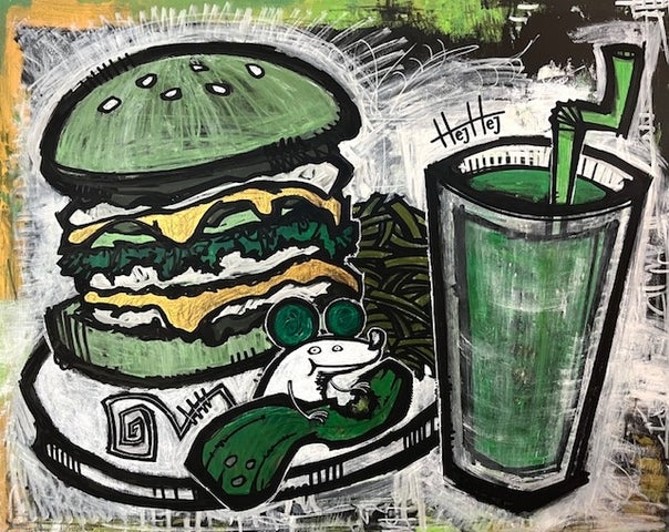 2018年にHej-Hejとして活動を始めたヘイヘイ氏は、インパクトある色彩とコミカルな画風で人間の二面性を動物で表現しています。