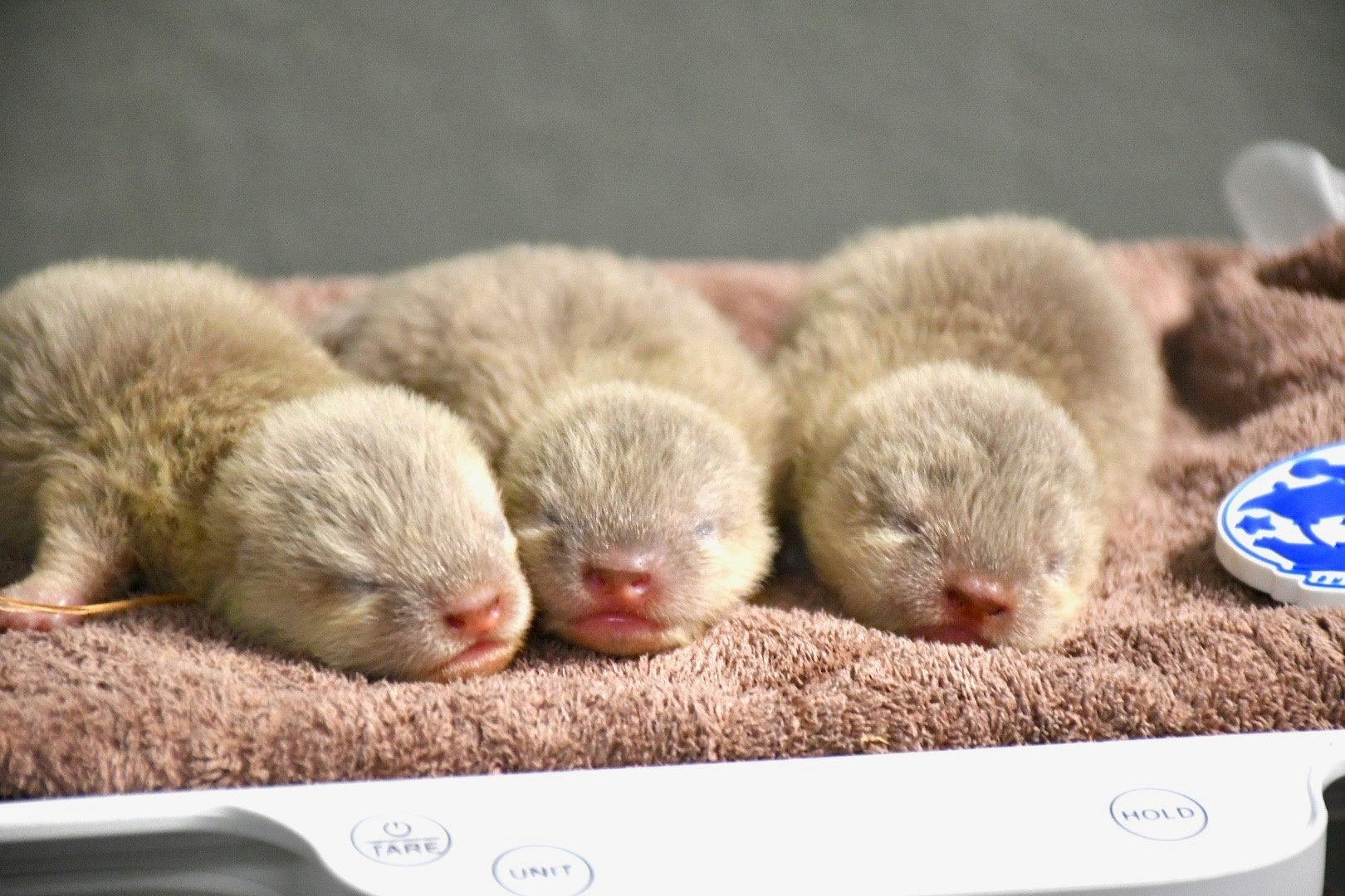 サンシャイン水族館では、コツメカワウソのマハロが3頭の赤ちゃんを出産しました。