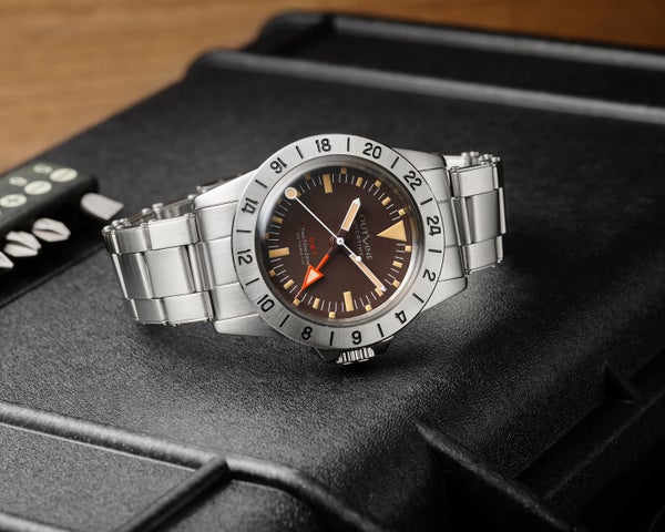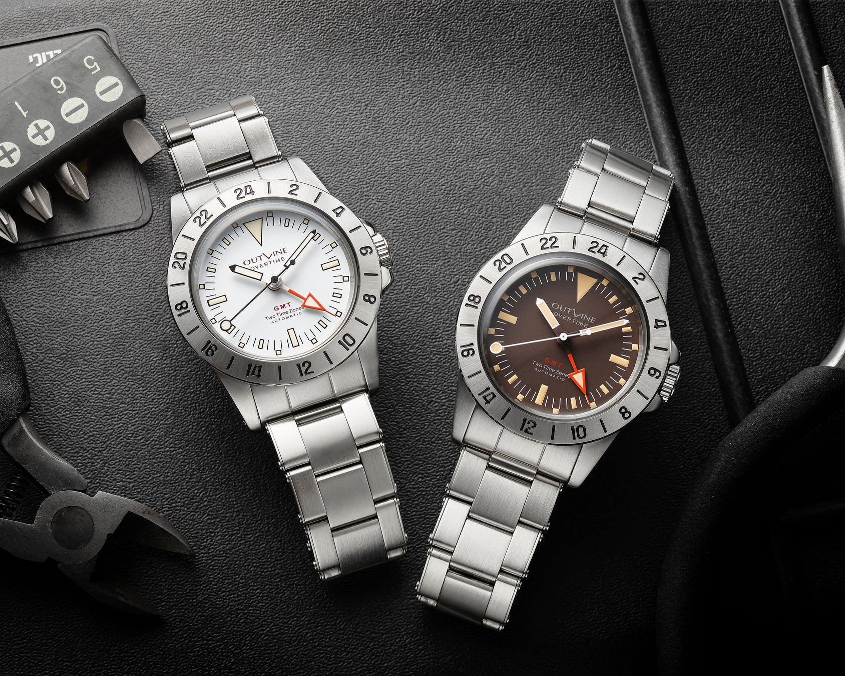 このモデルはクラウドファンディングで先行予約も可能で、デザインは70年代のツールウォッチをイメージしており、白文字盤とブラウンの2色展開です。