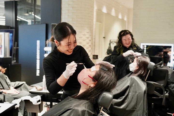 眉毛施術ブースや骨格理論体験ブースも設置され、HBLは眉毛の毛流れを整える次世代アイブロウ技術です。