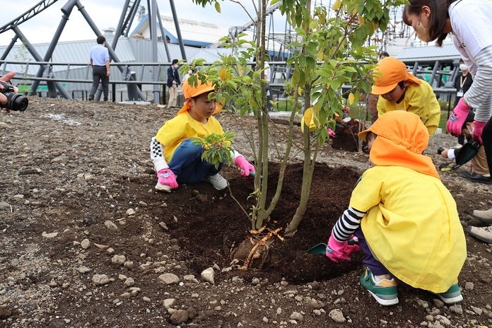 富士急ハイランドが、新コースター「ZOKKON」の敷地内で地元保育園のお子さまとともに植樹イベントを開催した。