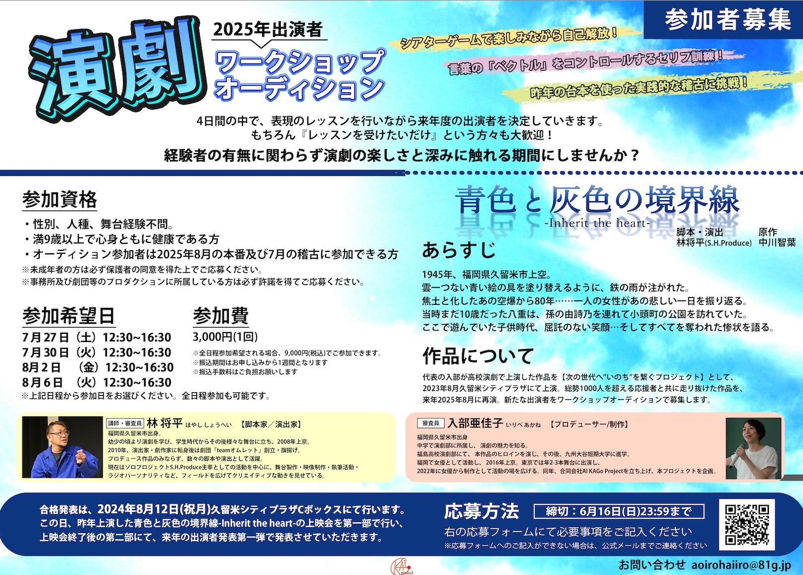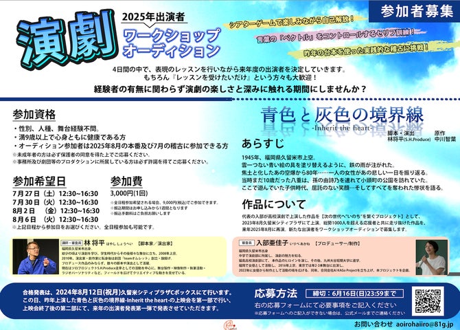 2025年の再演に向けて、ワークショップオーディションを開催し、参加者を募集しています。