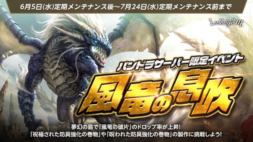 - 期間限定サーバー「パンドラ」で「風竜の息吹」イベント開催