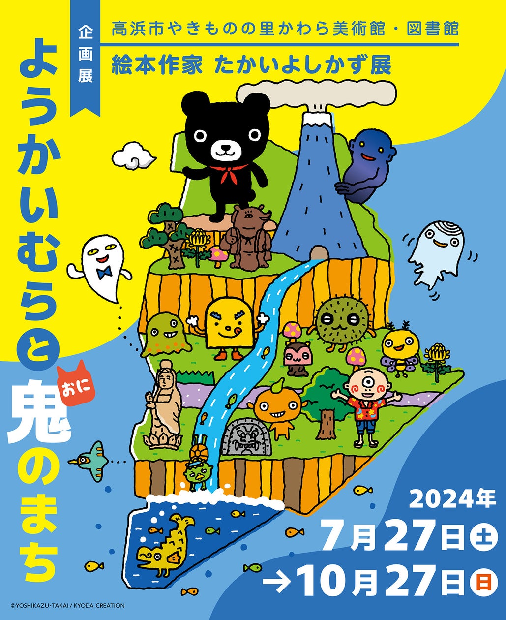 絵本作家兼イラストレーターのたかいよしかず氏による「ようかい×瓦のまち高浜」をテーマにした展示が、高浜市やきものの里かわら美術館・図書館で7月27日から開催されます。