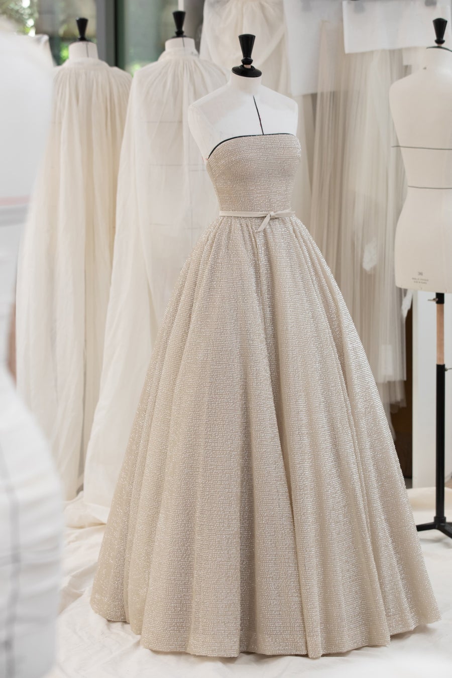 - マリアグラツィアキウリが特別にデザインしたベージュのストラップドレス