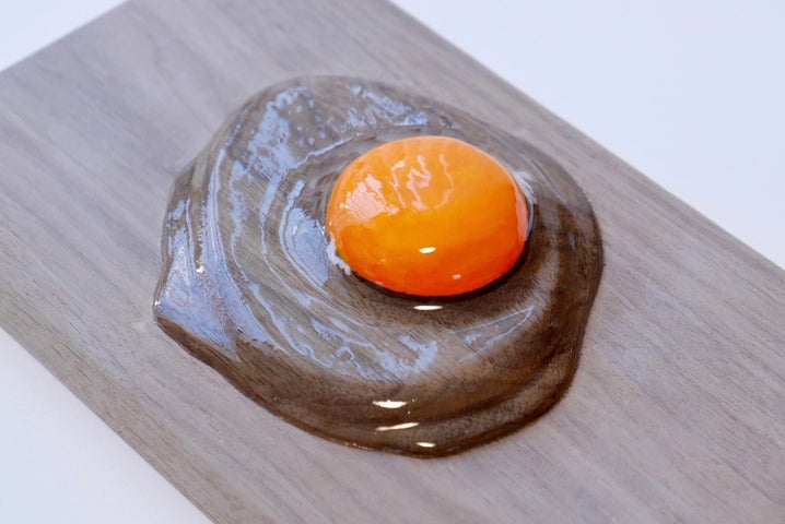 キボリノコンノ氏による体験型の展覧会では、本物そっくりな食べ物や透明な生卵など驚きの木彫り作品が展示され、子どもから大人まで楽しめます。