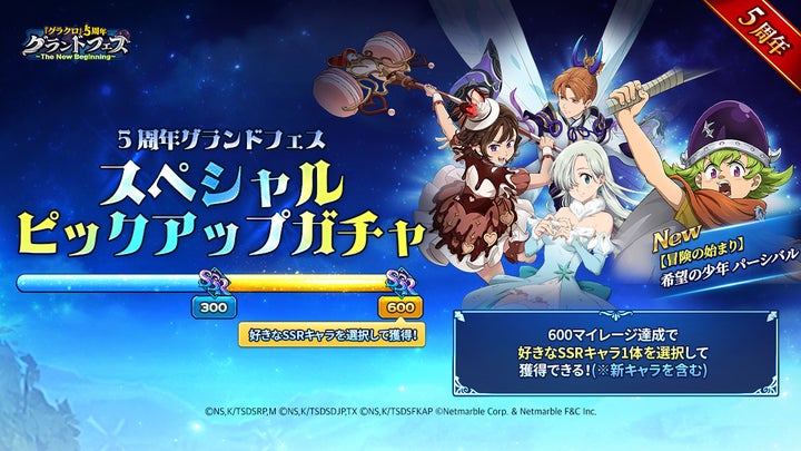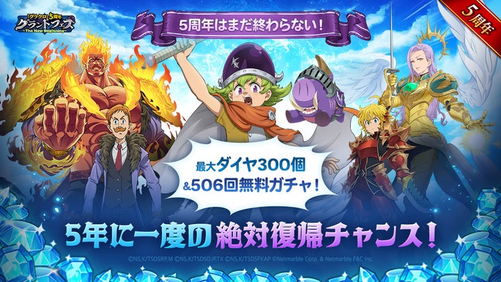 最大ダイヤ300個や500回の無料ガチャなどが登場します。