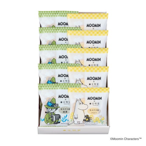 ハニーと抹茶の2つの味が楽しめ、ムーミンショップや文明堂オンラインショップで購入可能です。
