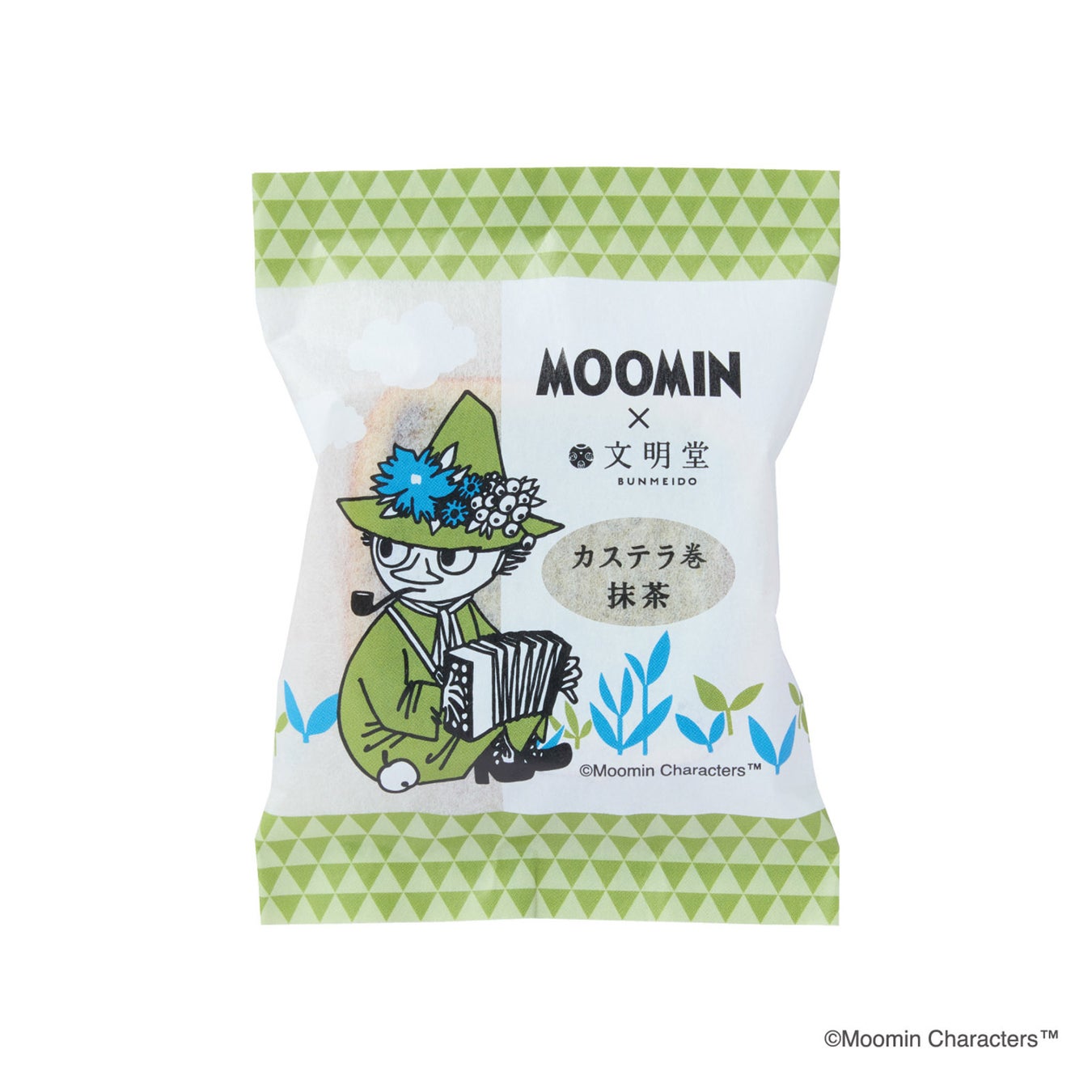 ムーミンとカステラの文明堂コラボ第2弾『カステラ巻』が登場しました!限定仕様で、和モダン柄の包装紙にムーミンやスナフキンが描かれています。