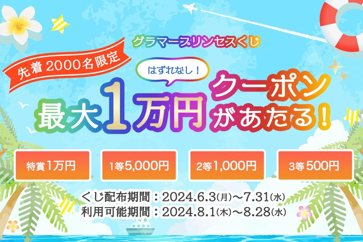 - 先着2,000名限定の最大1万円クーポンが当たるくじを開催