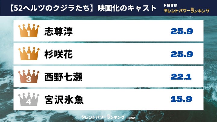 株式会社アーキテクトが主催するタレントパワーランキング supported by DmMiX は、映画「52ヘルツのクジラたち」に出演するタレントのパワースコアをリアルタイムで提供しています。