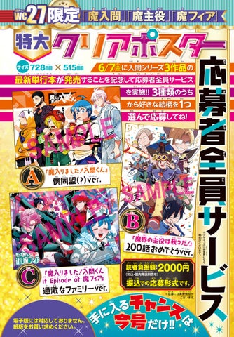 週刊少年チャンピオン27号では、「魔入りました!入間くん」「魔界の主役は我々だ!」「魔入りました! 入間くん if Episode of 魔フィア」の3作品が特集され、バビフェアが開催されます。