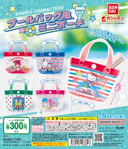 2024年6月第2週に、サンリオキャラクターズのプールバッグ風ミニポーチが発売されます。