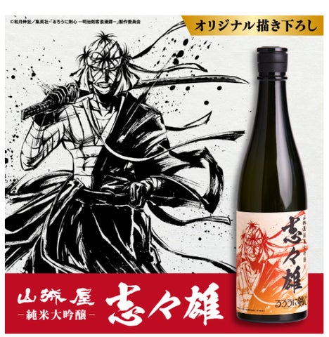 この限定商品には志々雄真実と緋村剣心のオリジナルイラストが入っており、日本酒とポテトチップスの組み合わせを楽しむことができます。