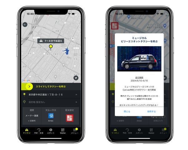 - タクシーアプリ「S.RIDE®」で呼べる「ビリーエリオットタクシー」が都内を走行