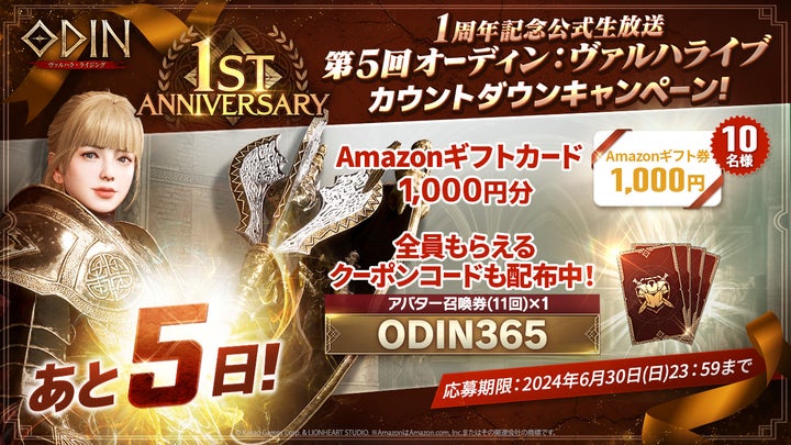 カカオゲームズは、『オーディン:ヴァルハラ・ライジング』の1周年を記念して特別生放送を開催します。