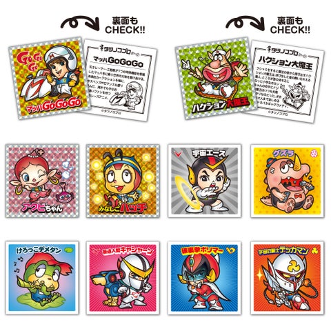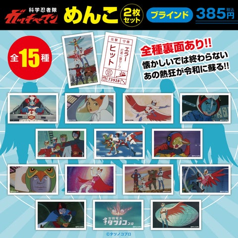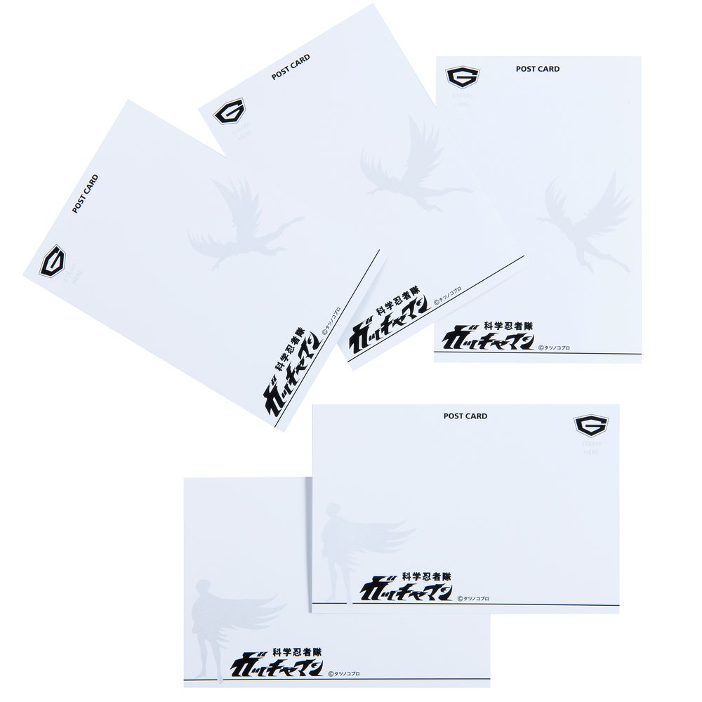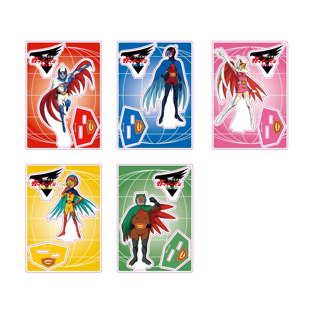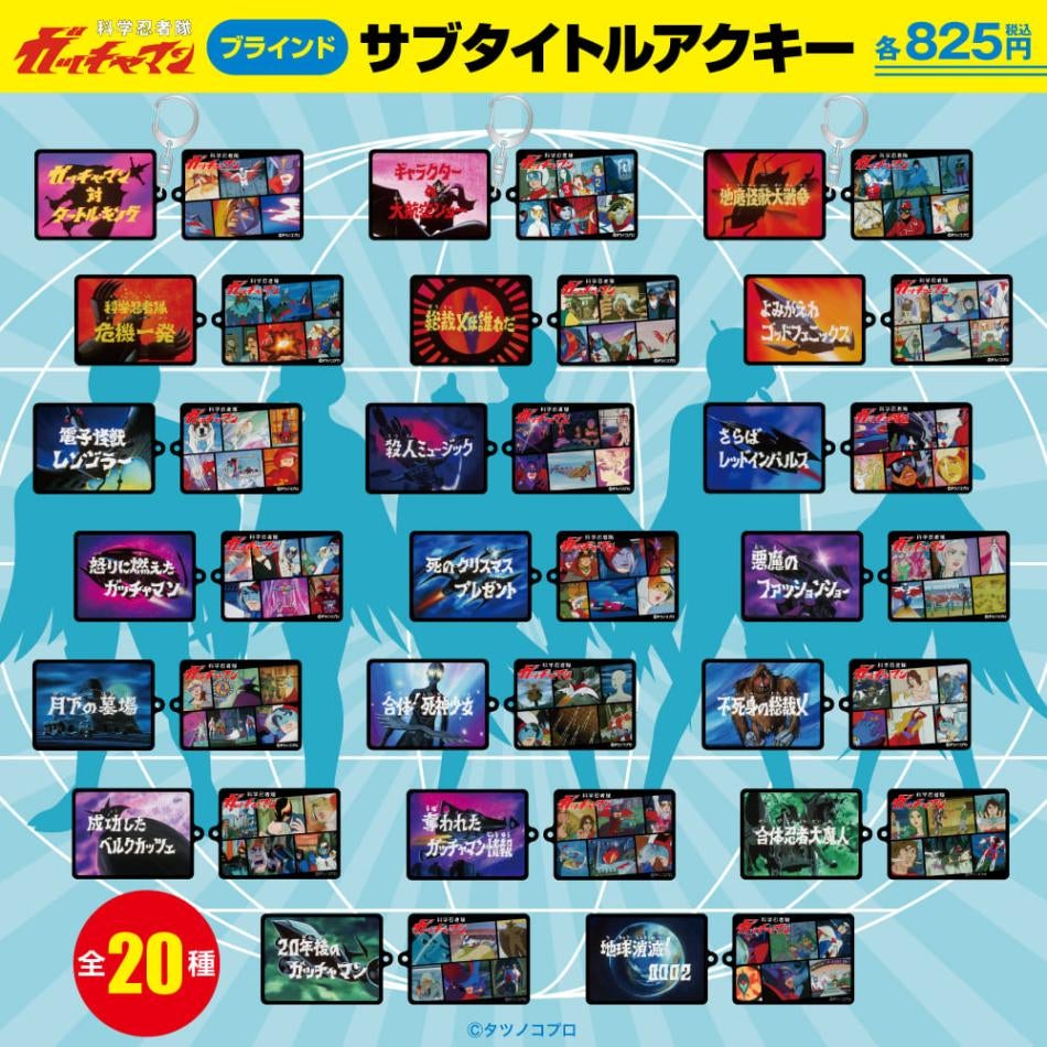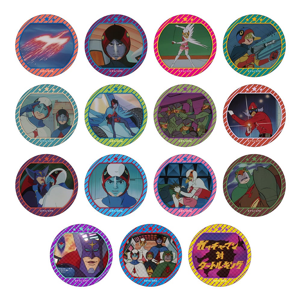 - Tシャツ、キャップ、アクリルスタンド、ポストカード、ピンバッジ、缶バッジ、シール、アクリルキーホルダー、腕時計、めんこ、ガッチャマンしおり