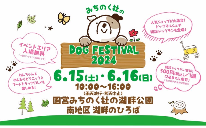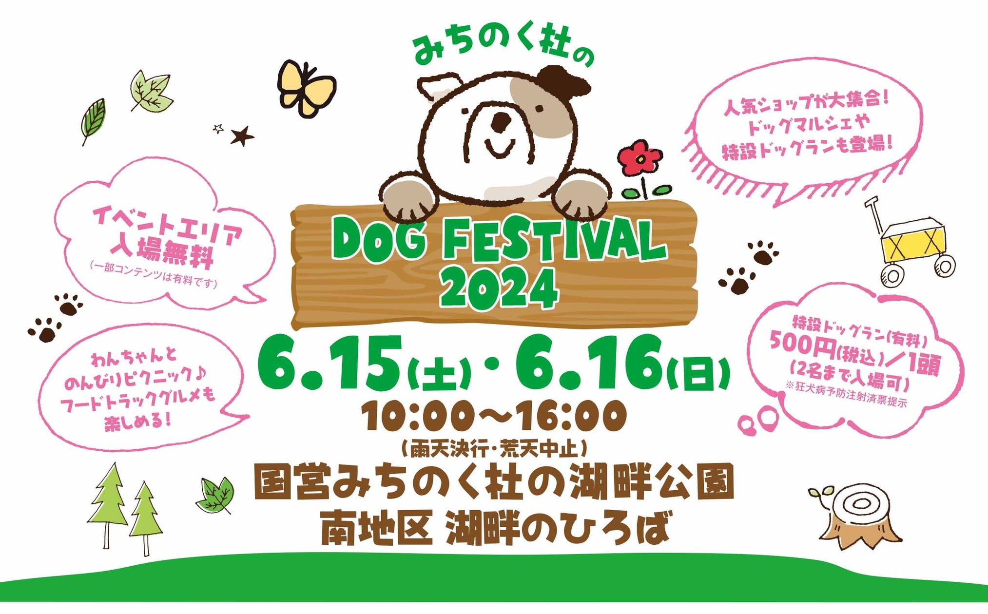 2024年6月15日(土)・16日(日)、国営みちのく杜の湖畔公園で開催される『みちのく杜のドッグフェスティバル』は、ワンちゃん向けのショップやフードトラック、特設ドッグラン、フリスビードッグ体験、ストレッチヨガ体験、DOG SUP体験など、充実したコンテンツが楽しめます。