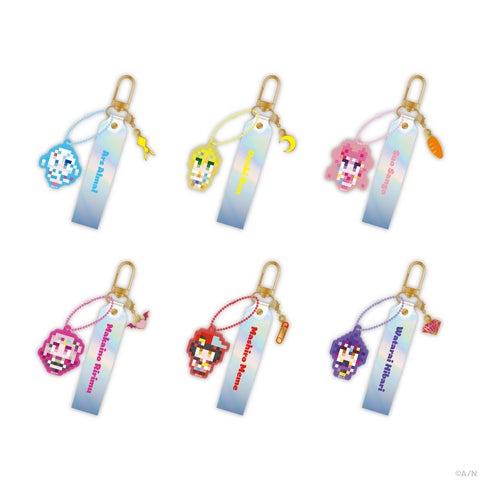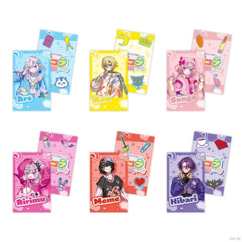 参加ライバーは6名で、アクリルスタンド、ランダムチェキ風カード、ステッカーセット、フェイスタオル、モチーフチャーム、パスケース、コレクトブックの7種類が用意されています。