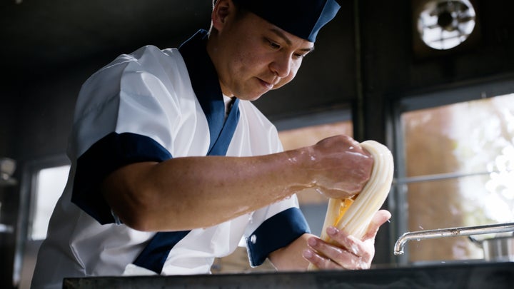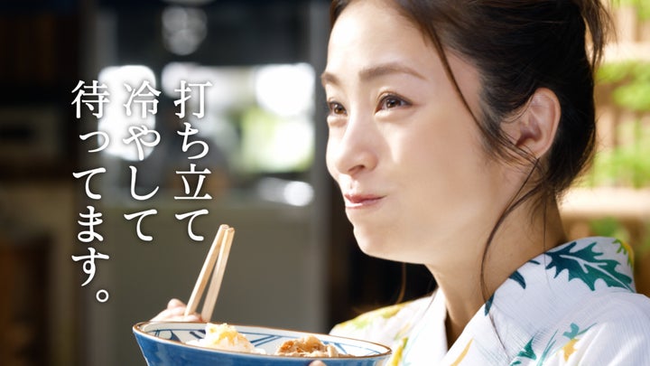 浴衣姿の上戸さんがこのうどんをすする姿から、夏の爽やかなおいしさが伝わります。