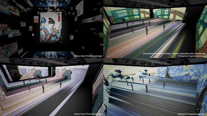 会場では広大な空間に名画の世界を再現し、参加者は自由に歩き回りながら全身でアートを体験できます。