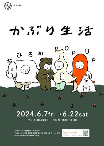 キンコーズ・ジャパン株式会社は、6月7日から6月22日まで、ツクル・ワーク新宿センタービル店でナガキパーマによる企画展「かぶり生活 おひろめPOP UP」を開催します。