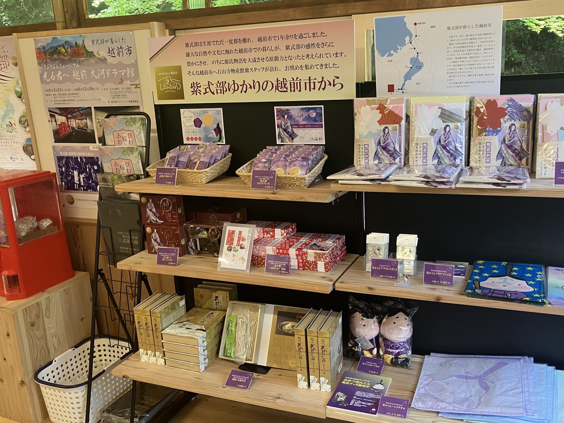 石山寺物産館「紫」では、紫式部や源氏物語に関連したお土産や特産品を約270点取り扱っており、売上総額は約2,600万円でした。