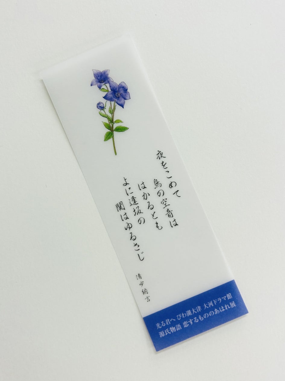石山寺境内で開催中の「大河ドラマ館」「恋するもののあはれ展」では、来館者に「和歌しおり」をプレゼントしています。
