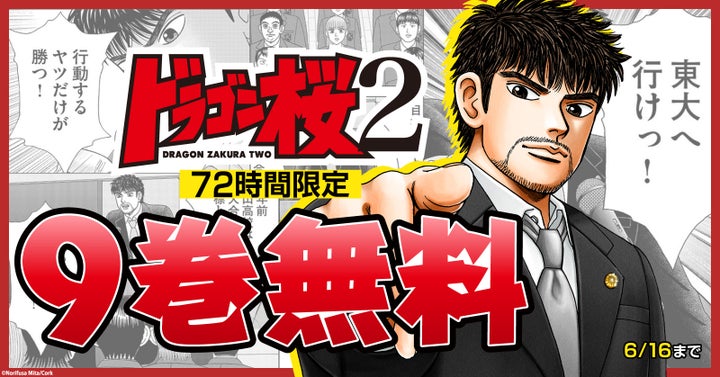 期間限定で「インベスターZ」「ドラゴン桜」「ドラゴン桜2」の名作を無料公開し、無料マンガを読むと最大5ポイントがもらえる抽選も行われます。