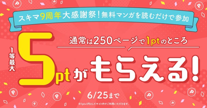 スキマ9周年大感謝祭!無料マンガ100話&5ポイント獲得!コイン購入もお得に!
