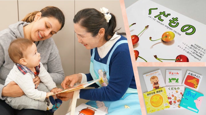 NPOブックスタートが推進する「ブックスタート事業」では、5言語の翻訳シールを貼った「多言語対応絵本」を制作し、外国人親子に提供しました。