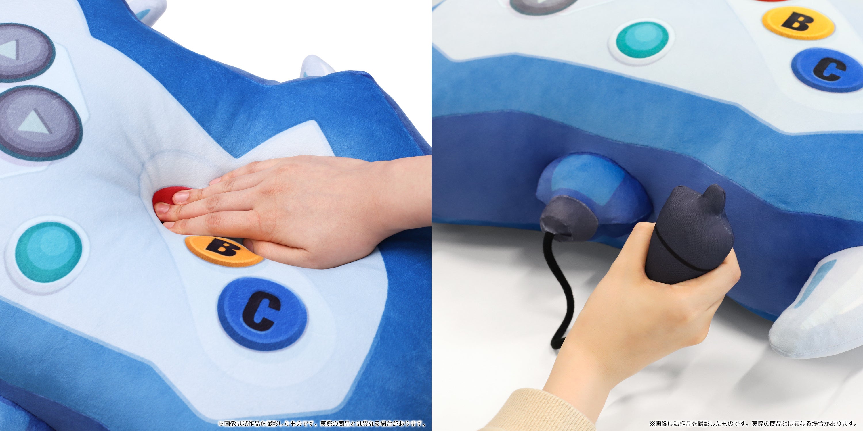 海馬の使用していたエネミーコントローラーは約60cmのビッグクッションに。コネクト部分も再現されています。