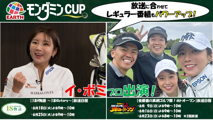 『蛍原徹の真剣ゴルフ部!ホトオープン』ではイ・ボミプロのプレーが注目され、『18H物語 ~18History~』では彼の人生が掘り下げられます。