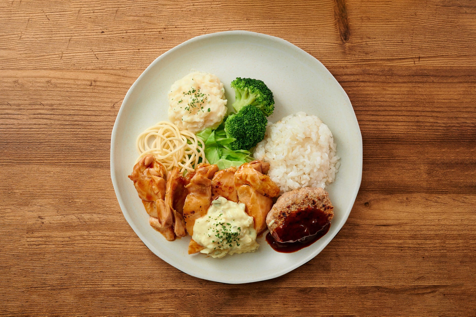 2.グリルハンバーグ(デミグラス)皮なし鶏もも肉 特製照り焼きタルタル