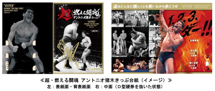 「超・燃える闘魂 アントニオ猪木きっぷ」は、アントニオ猪木氏のサインのレプリカやファイトシーン写真をデザインに取り入れた京王線の乗車券セットです。