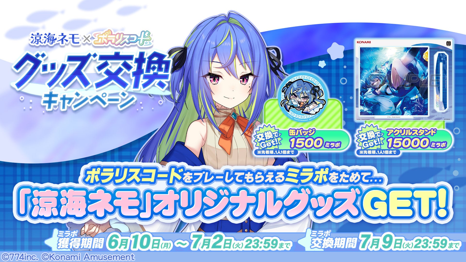 株式会社コナミアミューズメントは、6月10日から音楽ゲーム『ポラリスコード』とVTuberプロダクション「ななしいんく」の『涼海ネモ』とのコラボイベントを開催します。
