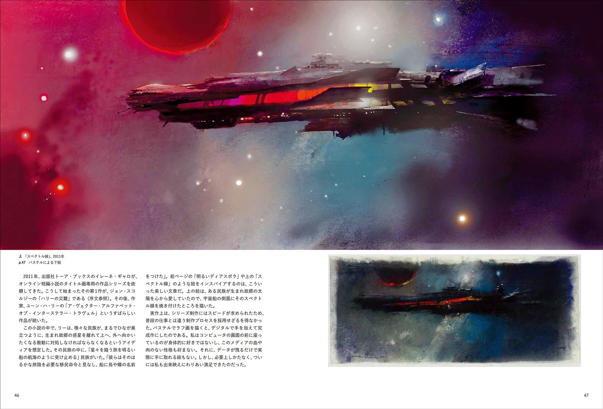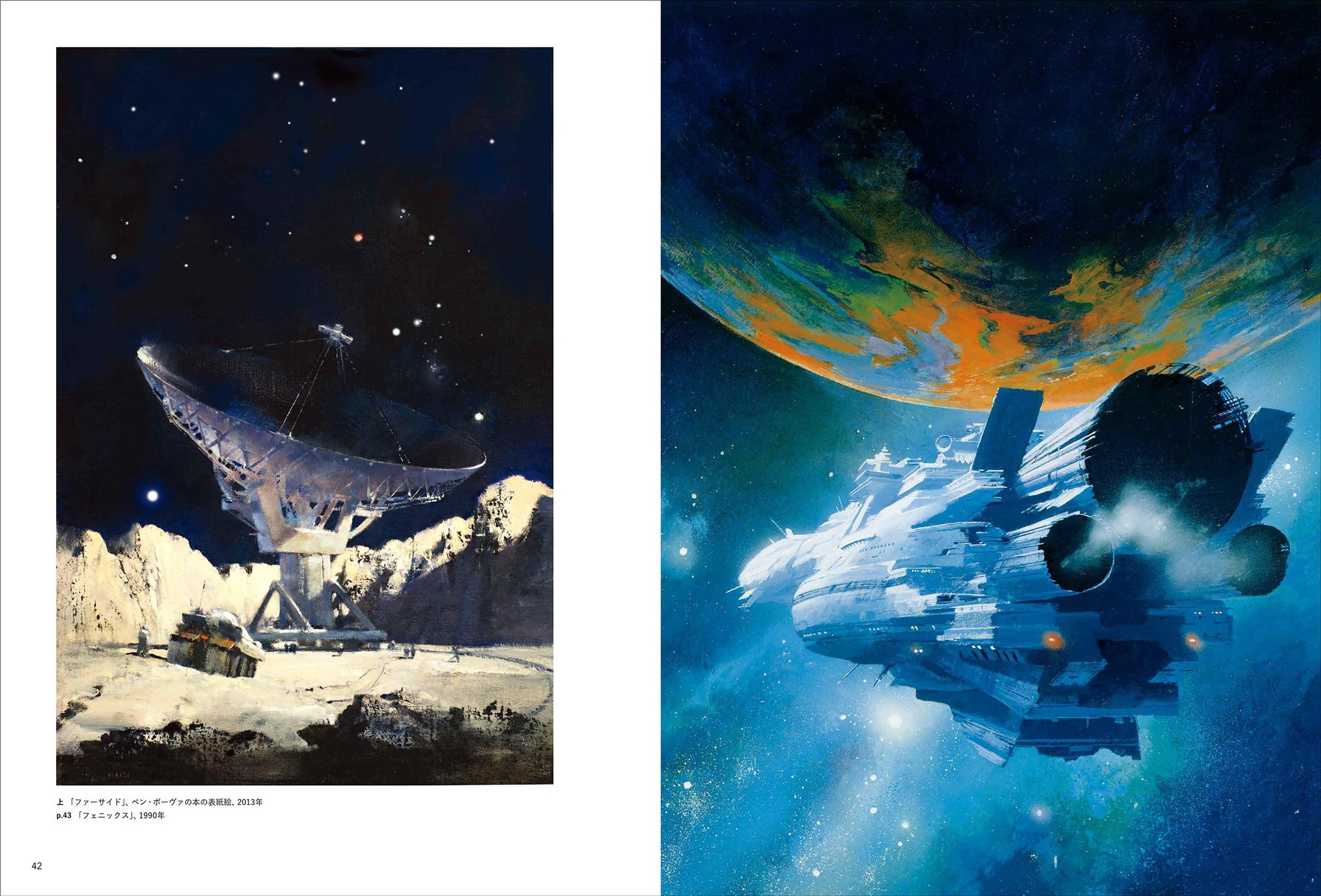 本書は、ジョン・スコルジー、ベン・ボーヴァ、ジャック・マクデヴィット、オーソン・スコット・カードといった作家たちの著作に使用された作品、およびその下絵などを中心に、その唯一無二の世界を紹介。
