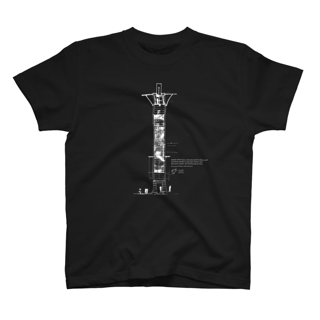 建築ドローイングTシャツは3,800円で、香山壽夫氏の作品を使用。