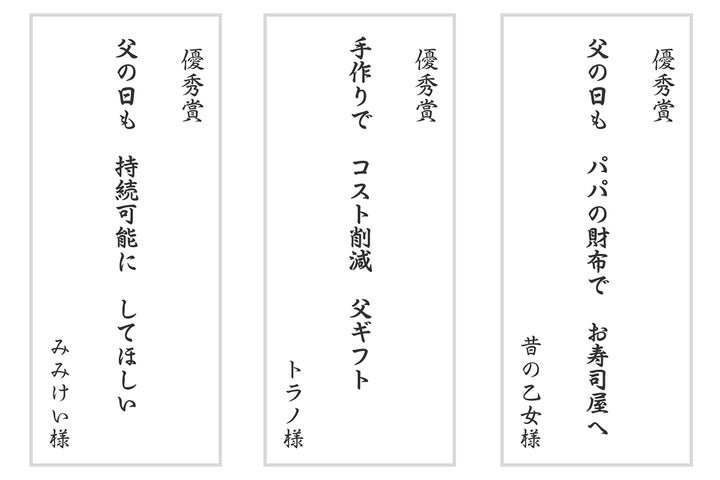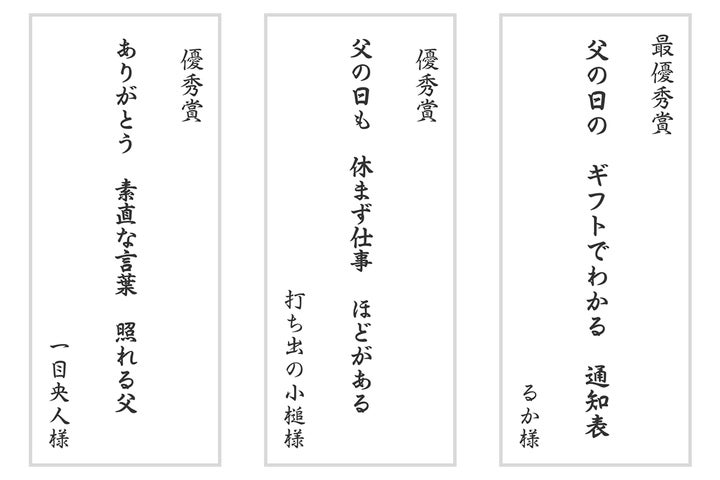 - 優秀賞5句も選出、父への感謝や手作りギフトがテーマ