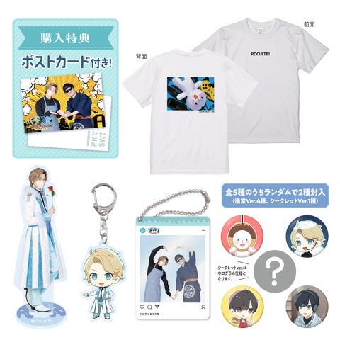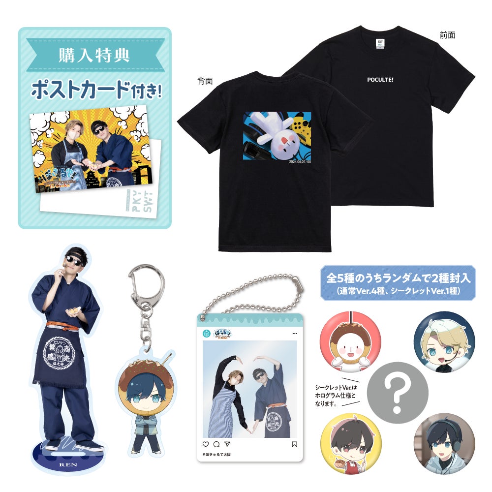 - 新グッズ、Whiteセット、Blackセット、ぽきまるTシャツ、アクリルスタンド、アクリルキーホルダー、ランダム缶バッジ