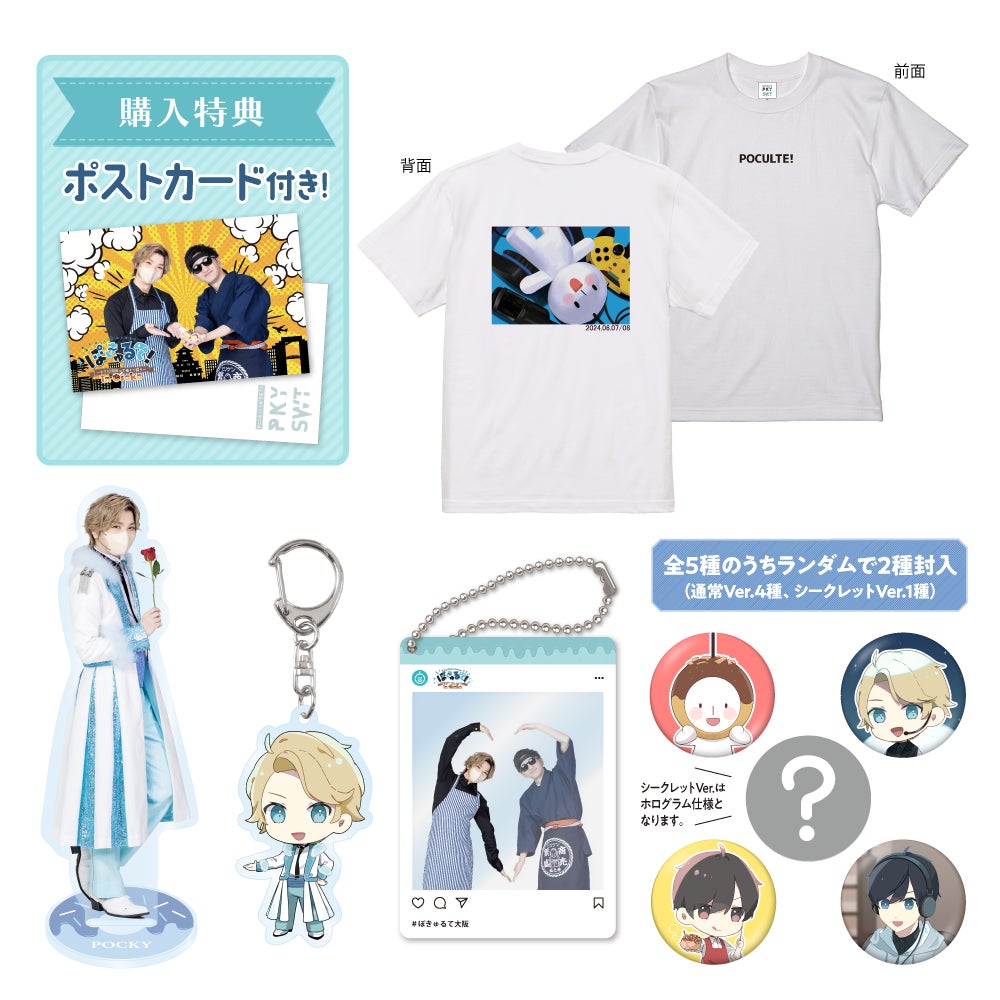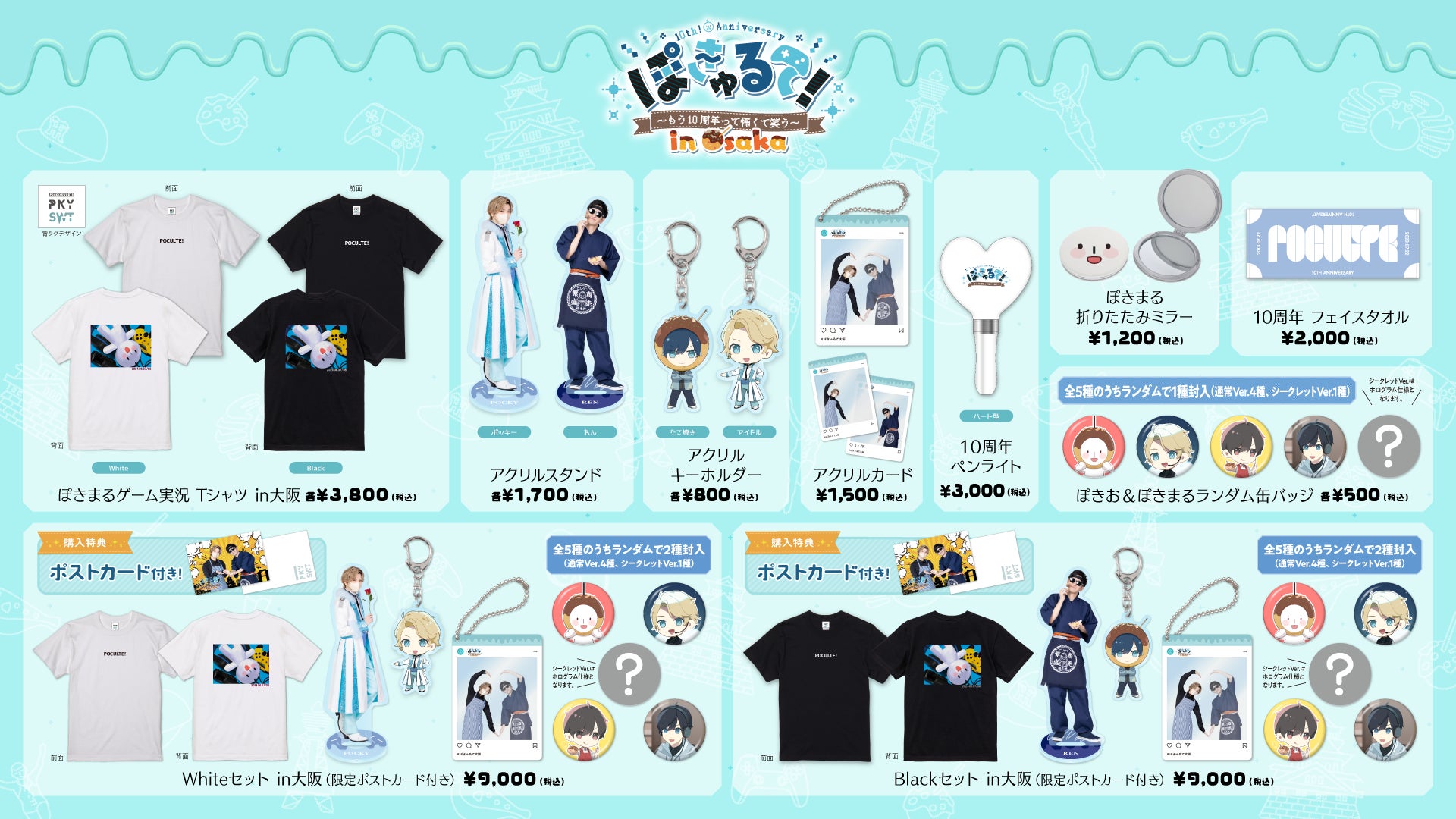 販売アイテムには、大阪イベント限定のWhiteセットやBlackセット、ぽきまるTシャツ、アクリルスタンドなどが含まれます。