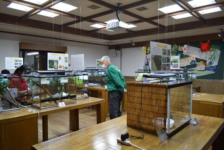 国営アルプスあづみの公園堀金・穂高地区のあづみの学校理科教室では、「あめあめふれふれ カエル展」が開催されています。