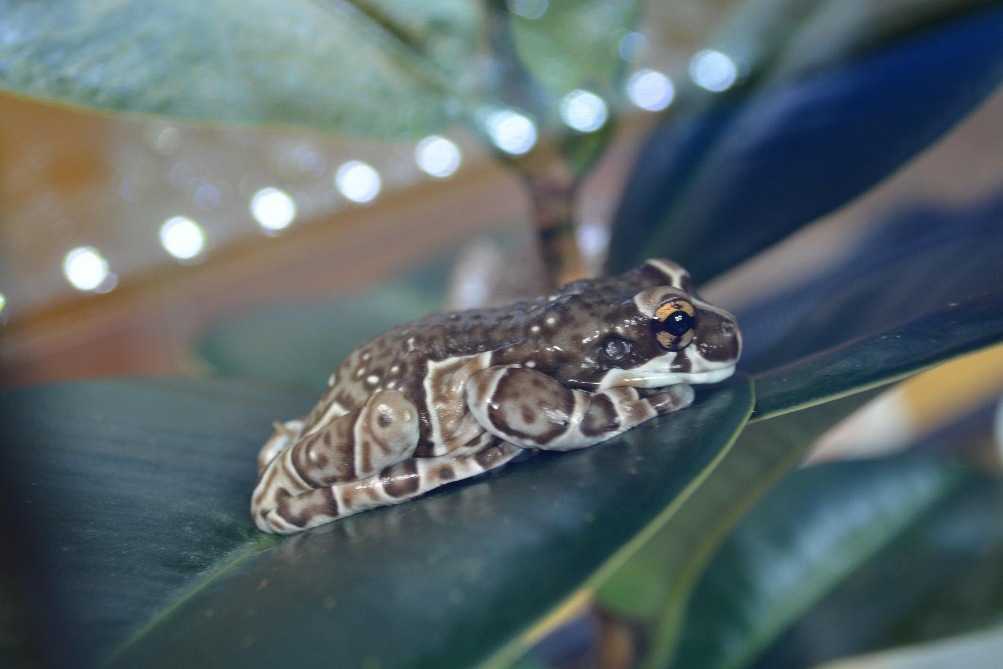 今年は新種の「ヒラタコモリガエル」も登場し、日本や海外の珍しいカエルが50匹展示されています。